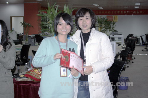 技術部鄭小冬為解決獨立網站和個性化網站出現的問題,不辭辛苦加班加點配合修改,獲得公司2009年度十二月份技術模范獎。