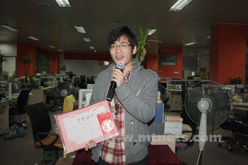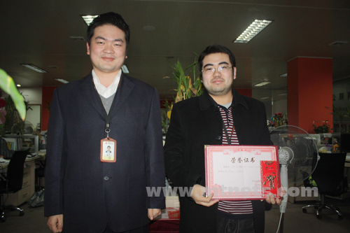 編輯部石巖、錢華麗獲的11月模范獎
