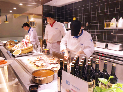 鮮嫩的阿根廷大蝦、滋補的鮑魚、鮮艷的蟹、各種扇貝生蠔小龍蝦、剛切的三文魚、冰山蚌以及專業廚師操刀烹飪的魷魚和牛排都在向我們招手,仿佛在說:我們已經洗干凈躺好啦,快來吃我呀!